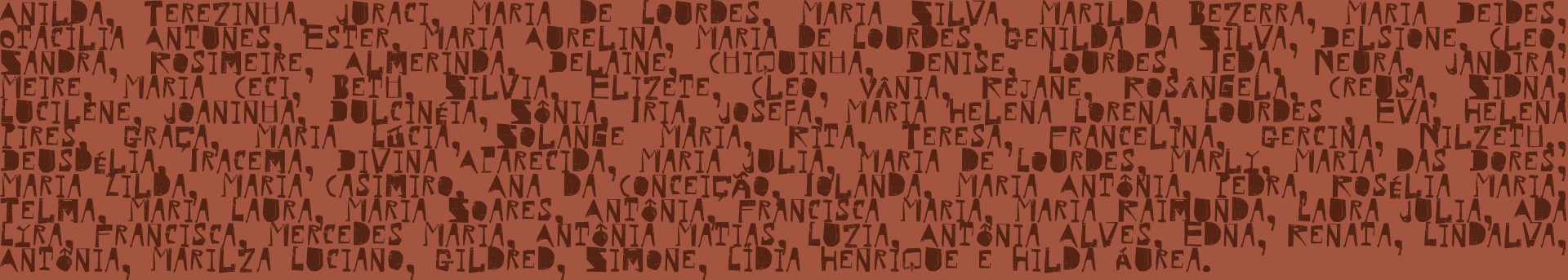 Como Deusdélia, Iracema, Divina Aparecida, Maria Julia, Maria de Lourdes, Marly, Maria das Dores, Maria Zilda, Maria Casimiro, Ana da Conceição, Iolanda, Maria Antônia, Pedra, Rosélia Maria, Telma, Maria Laura, Maria Soares, Antônia, Francisca Maria.